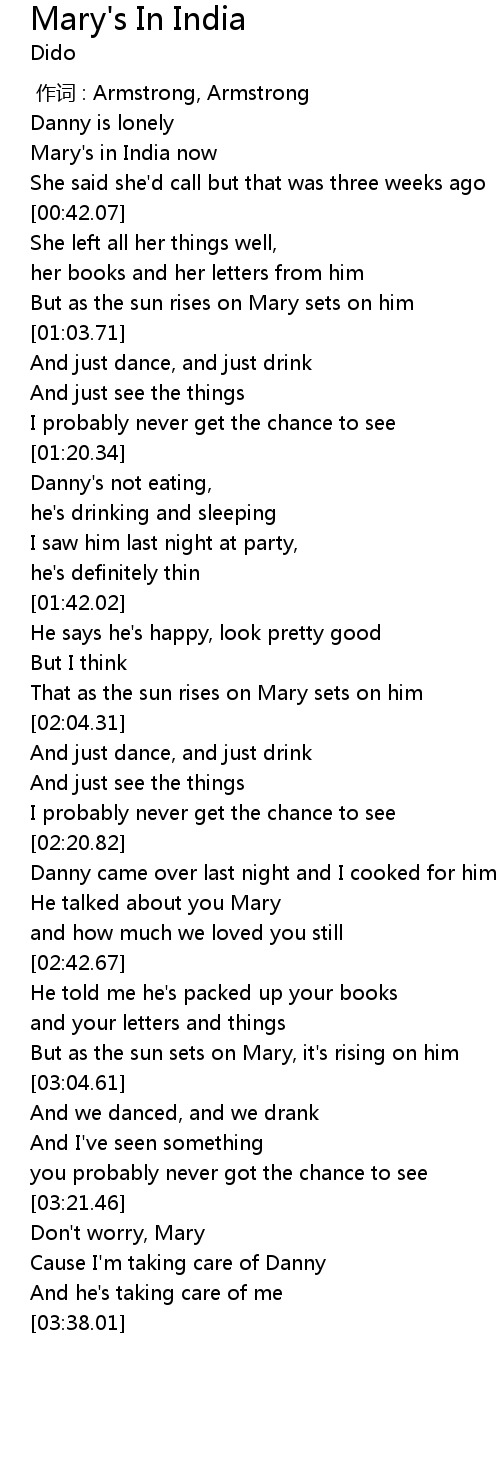 | [00:27.24] | Mary' s in India now |