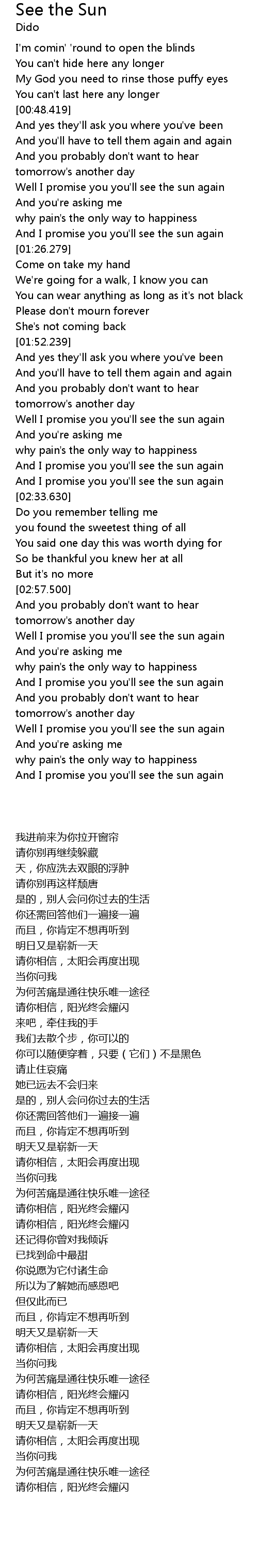 | [02:29.800] | And I promise you you' ll see the sun again |