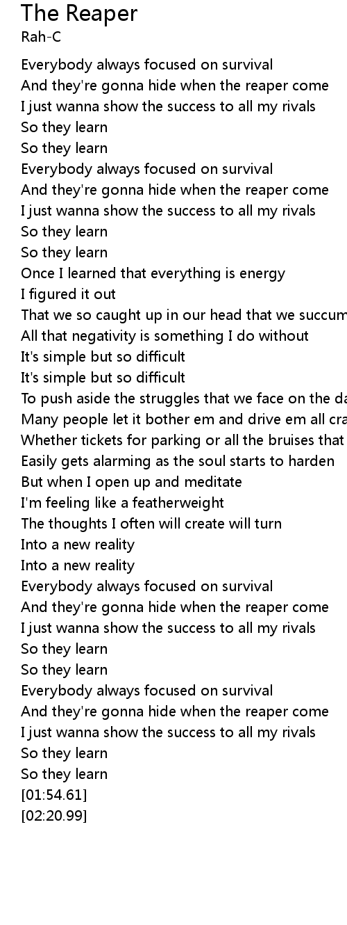 And they're gonna hide when the reaper come |