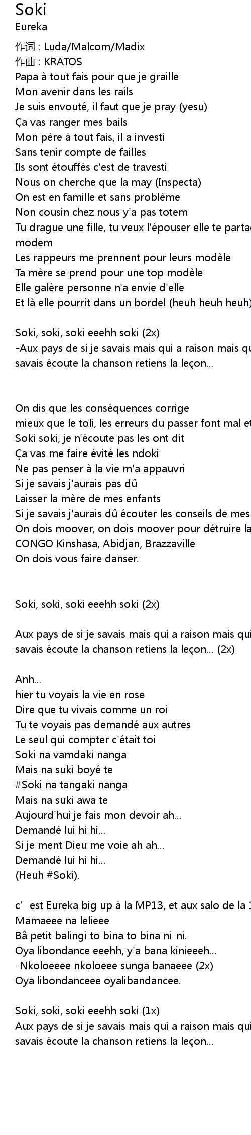 | Soki soki, je n'e coute pas les ont dit | |
