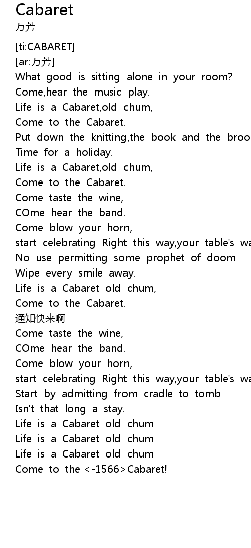 | [03:34.52] | Come to the <-1566>Cabaret! |