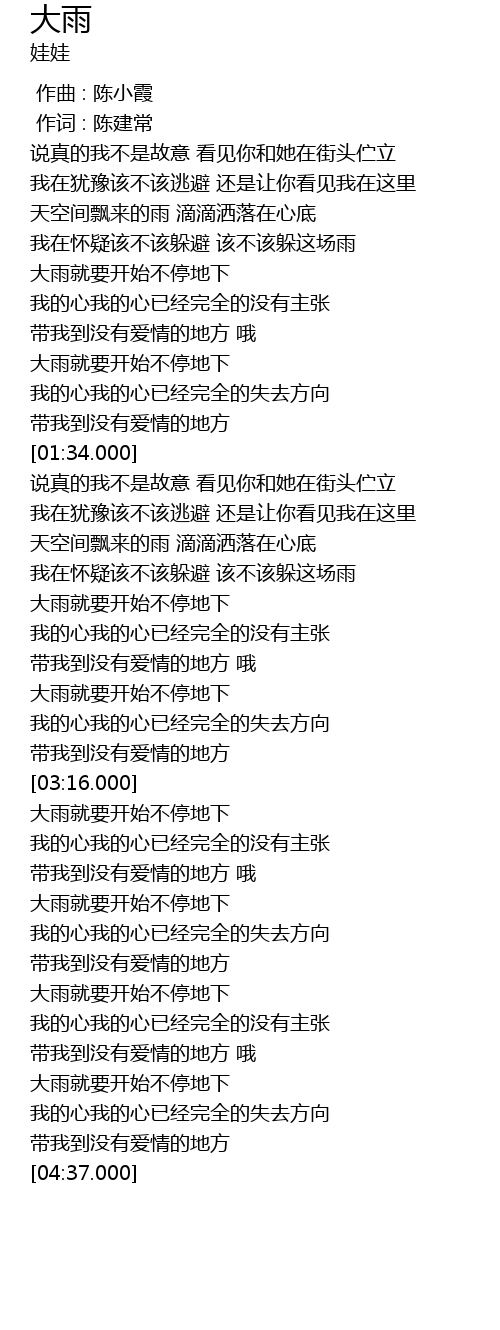 | [03:34.000] | 大雨就要开始不停地下 |