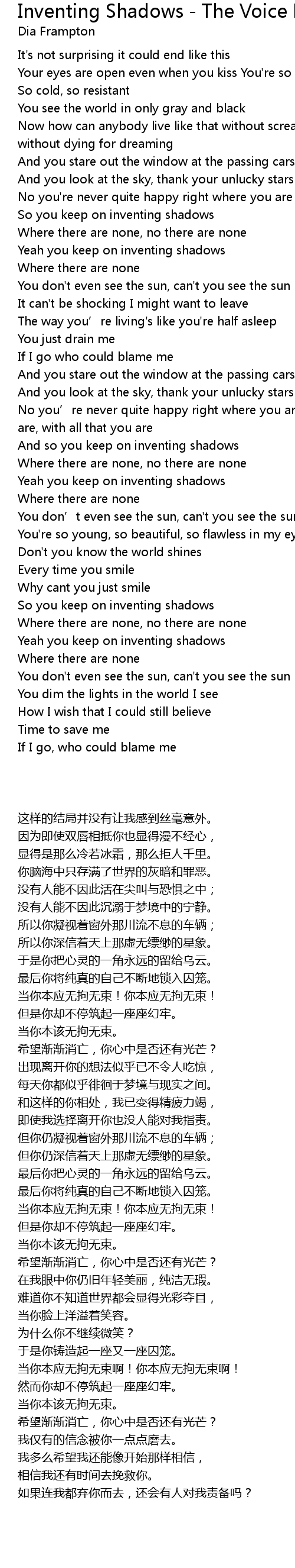 | 歌曲 | Inventing Shadows - The Voice Performance |