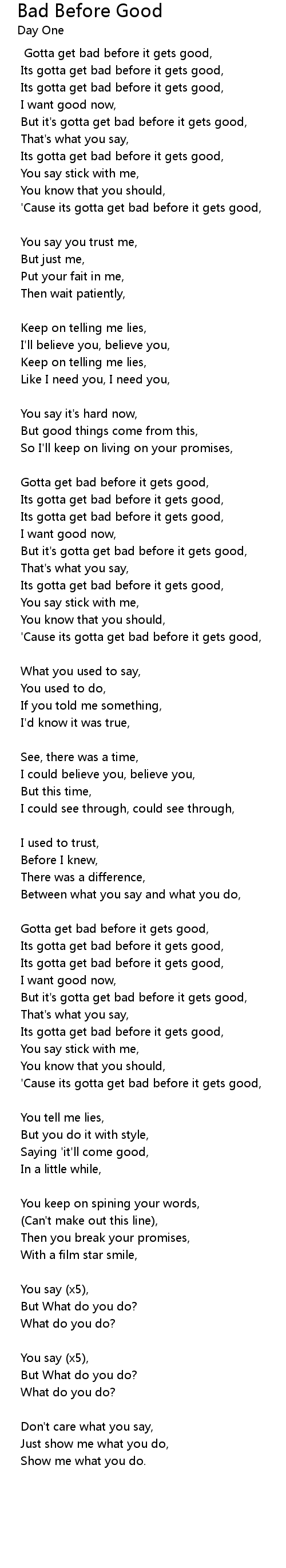 'Cause its gotta get bad before it gets good, |