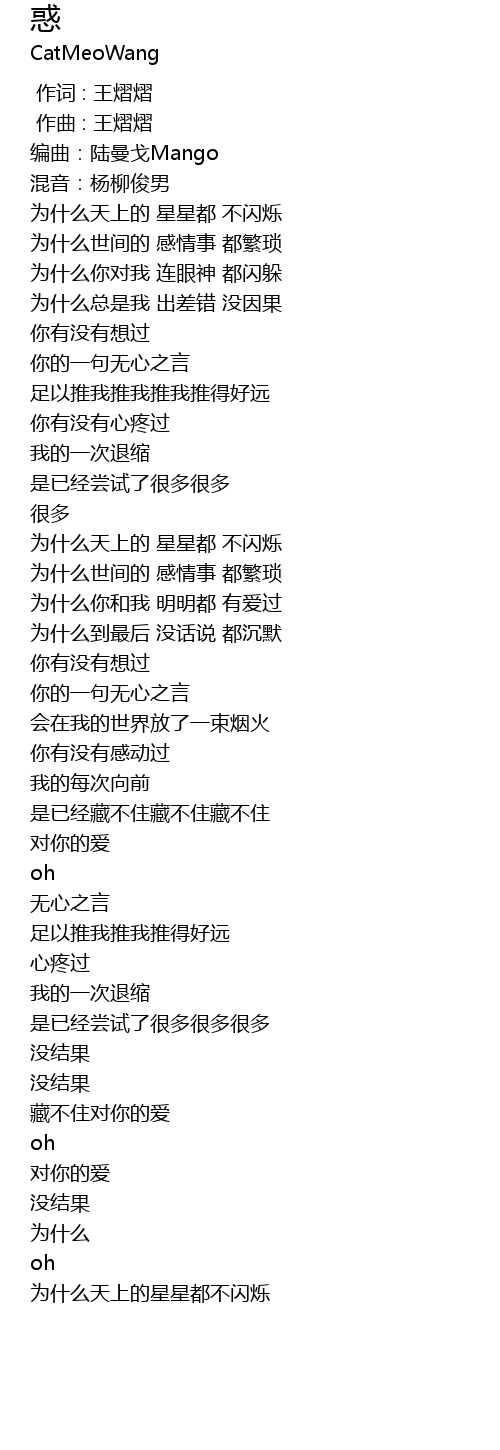 | [02:01.333] | wei shi me tian shang de xing xing dou bu shan shuo |