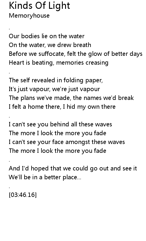 I can't see your face amongst these waves |