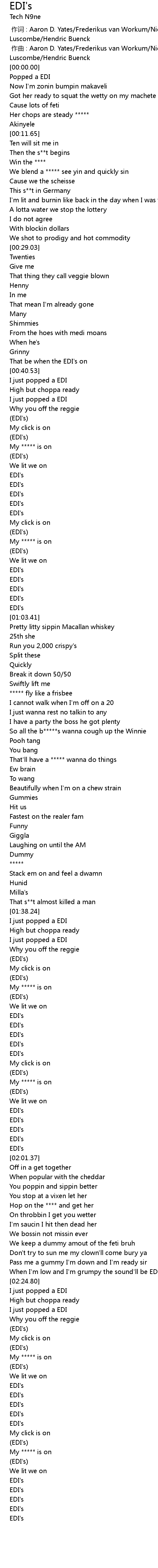 | [01:19.21] | So all the b*****s wanna cough up the Winnie |
