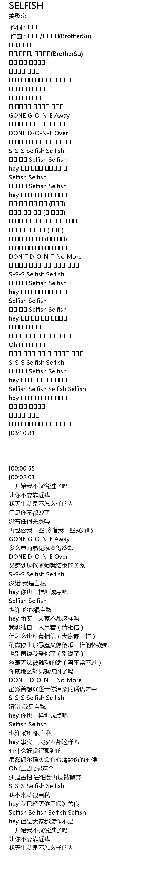 | [02:38.79] | 원래 나는 Selfish Selfish |