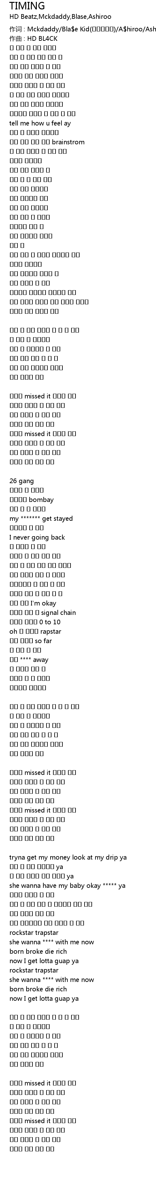 作词 : Mckdaddy/Bla$e Kid(블라세키드)/A$hiroo/Ashiroo/Mckdaddy