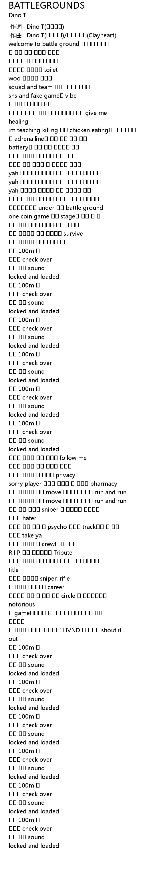 | [02:26.373] | 숨어 나를 노리는 sniper 난 숨지않어 걔네들을 닦아줘 hater |