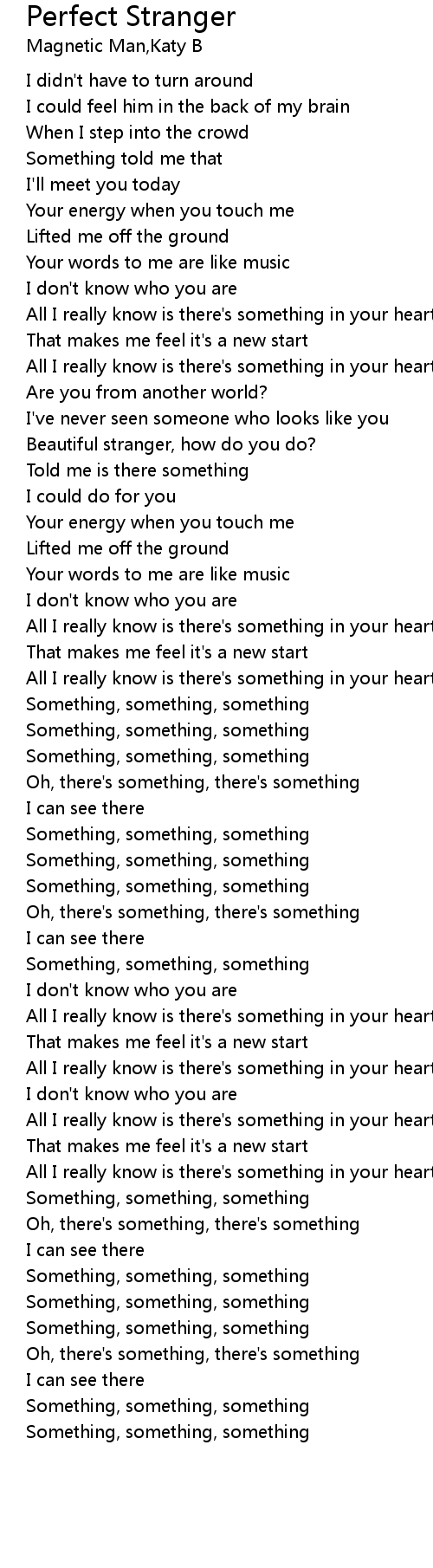 Beautiful stranger, how do you do? |