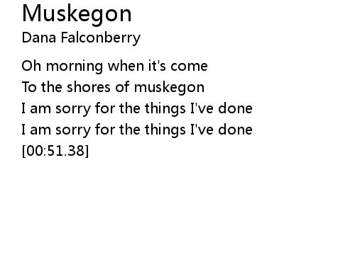 | [00:32.37] | To the shores of muskegon |