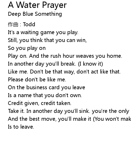 | 歌曲 | A Water Prayer |