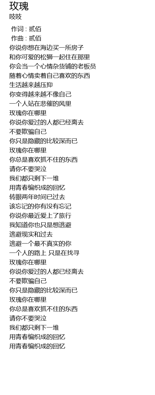 | [00:01.000] | zuò qǔ : èr bǎi |