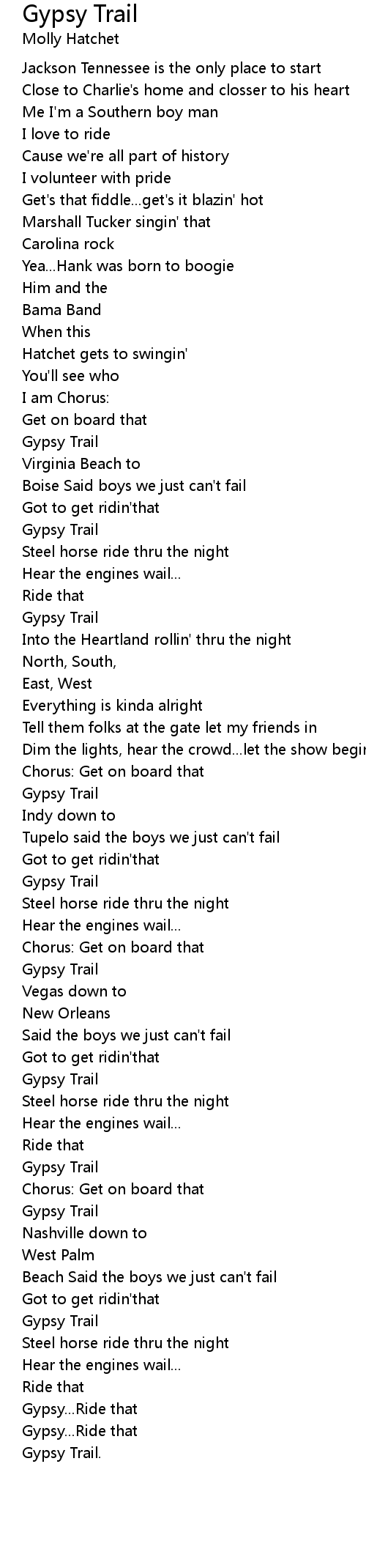 Gypsy Trail 歌词