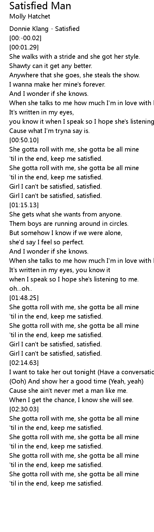 'til in the end, keep me satisfied. |