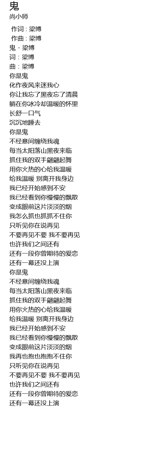 | [00:01.07] | 鬼 - 梁博 |