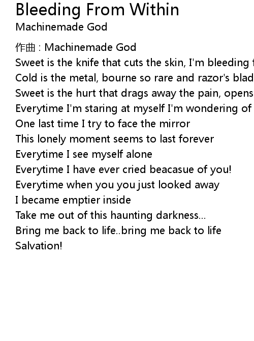 | Sweet is the knife that cuts the skin, I' m bleeding feelings from within. | |