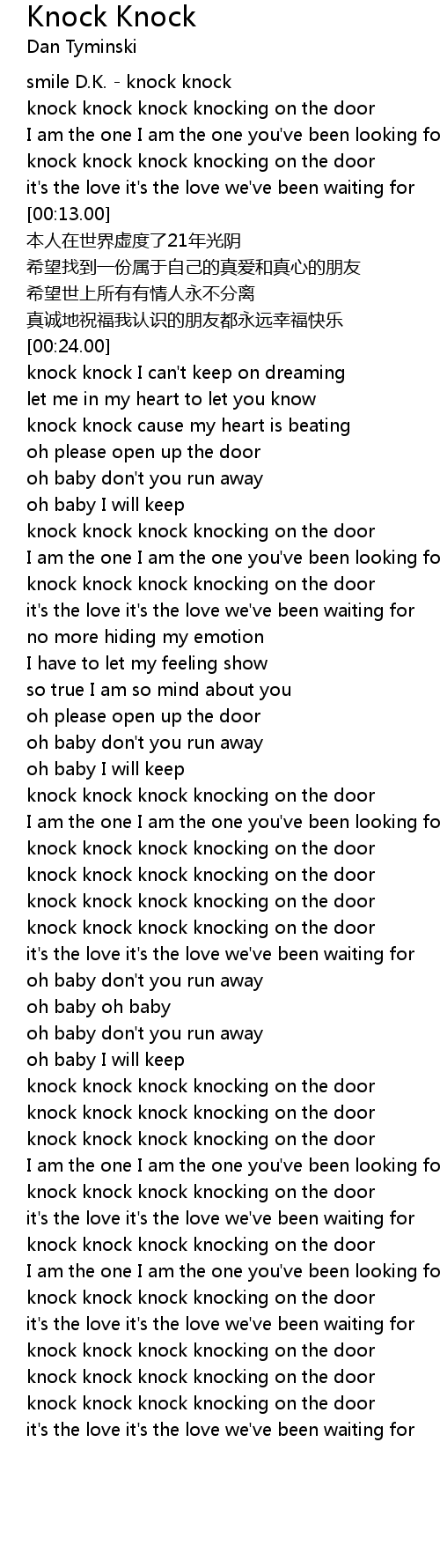 | [00:28.78] | knock knock I can't keep on dreaming |