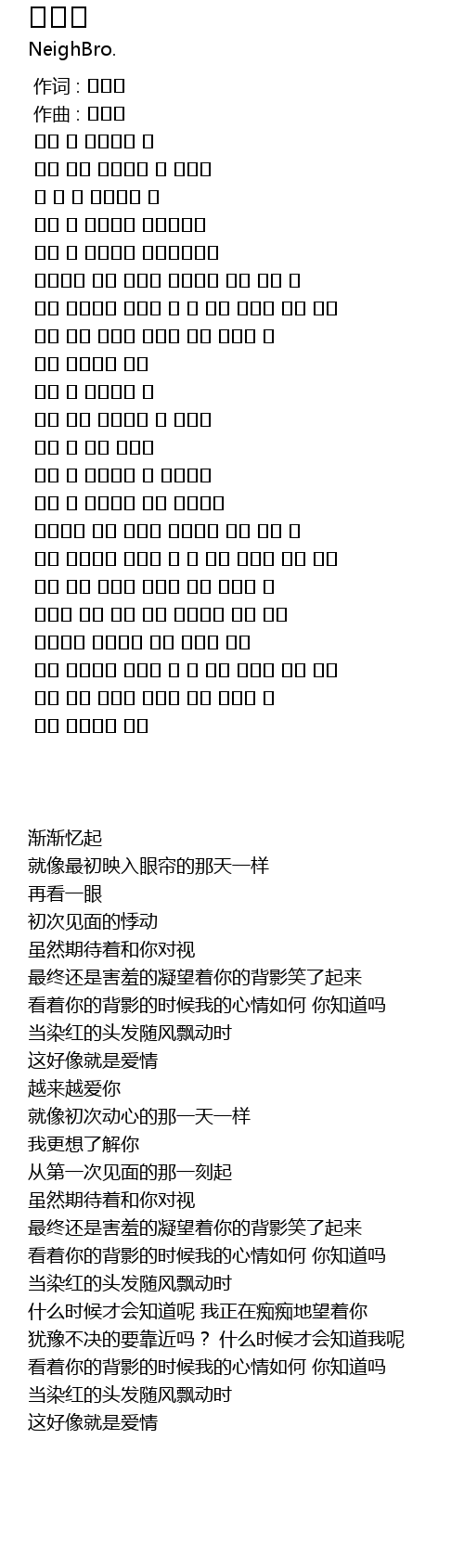 | [02:17.381] | 最终还是害羞的凝望着你的背影笑了起来 |