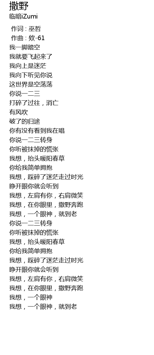 | [01:29.457] | 我想,在你眼里,撒野奔跑 |