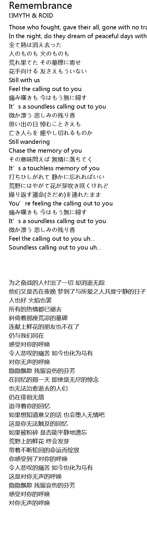 | [00:21.74] | Those who fought, gave their all, gone with no trace |