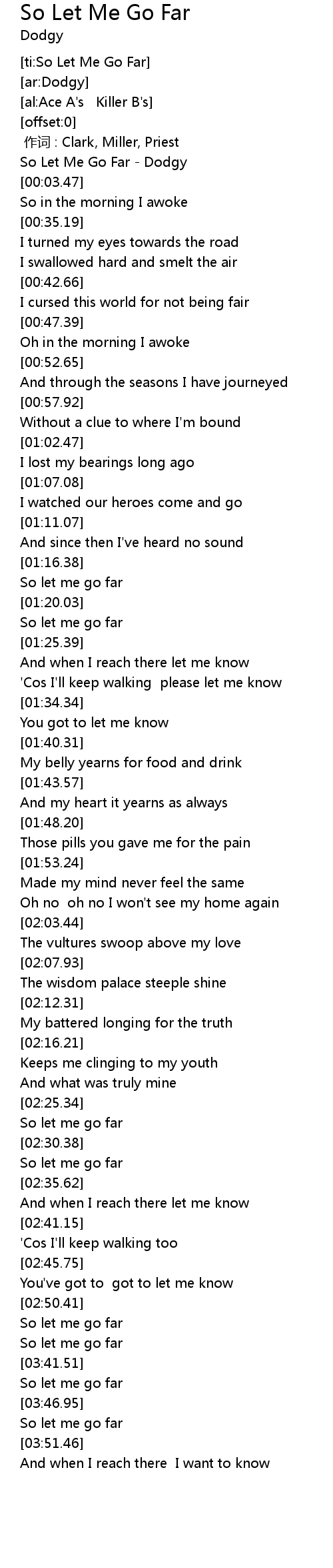 | [00:01.62] | So Let Me Go Far - Dodgy |