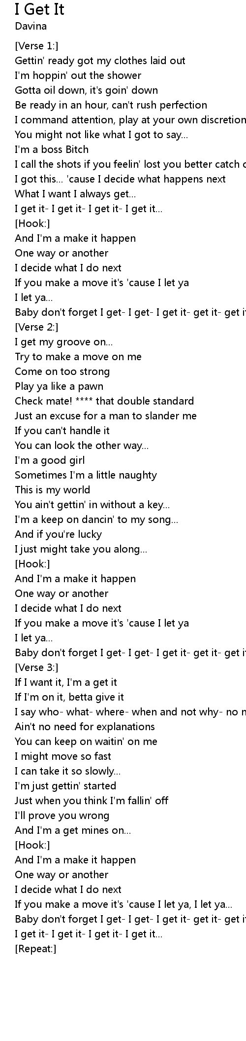 Baby don't forget I get- I get- I get it- get it- get it- get it... |