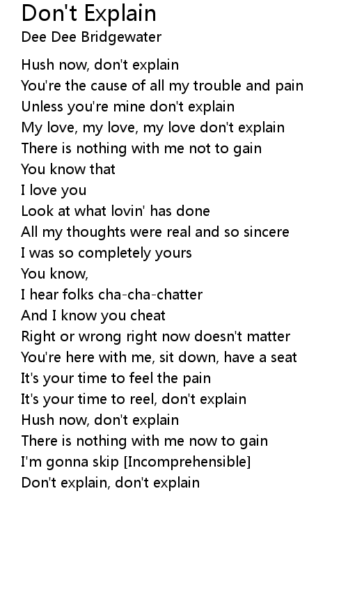 Hush now, don't explain |