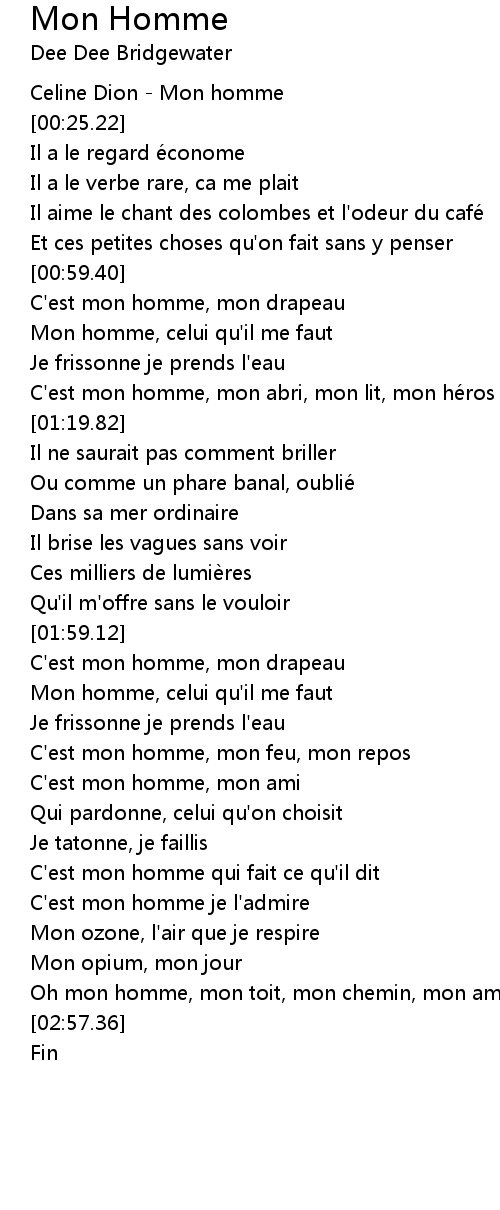 | [02:46.52] | Oh mon homme, mon toit, mon chemin, mon amour |