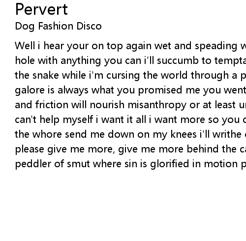 Well i hear your on top again wet and speading wide for a dead man filling your hole with anything you can i'll succumb to temptation and take the fruit from the snake while i'm cursing the world through a prism of hate bacause pussy galore is always what you promised me you went and tained my kotex fantasy wine and friction will nourish misanthropy or at least until i get to the pharmacy i can't help myself i want it all i want more so you can be the martyr and i'll be the whore send me down on my knees i'll writhe on the floor i'm begging you please give me more, give me more behind the camera's eye is a pervert and a peddler of smut where sin is glorified in motion pictures staring kaka and vomit |