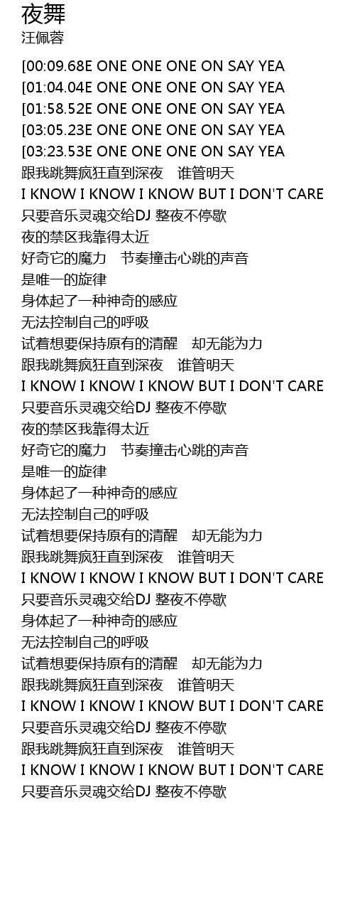 | [01:06.46] | 跟我跳舞疯狂直到深夜 谁管明天 |