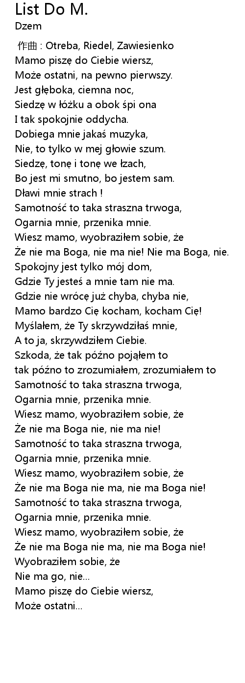 | [01:01.27] | Mamo pisz do Ciebie wiersz, |