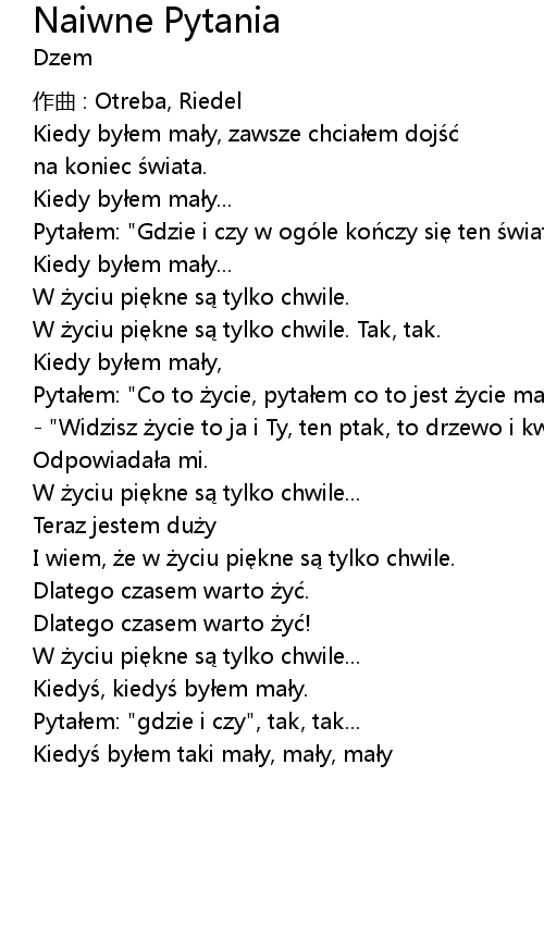 | 歌曲 | Naiwne Pytania |