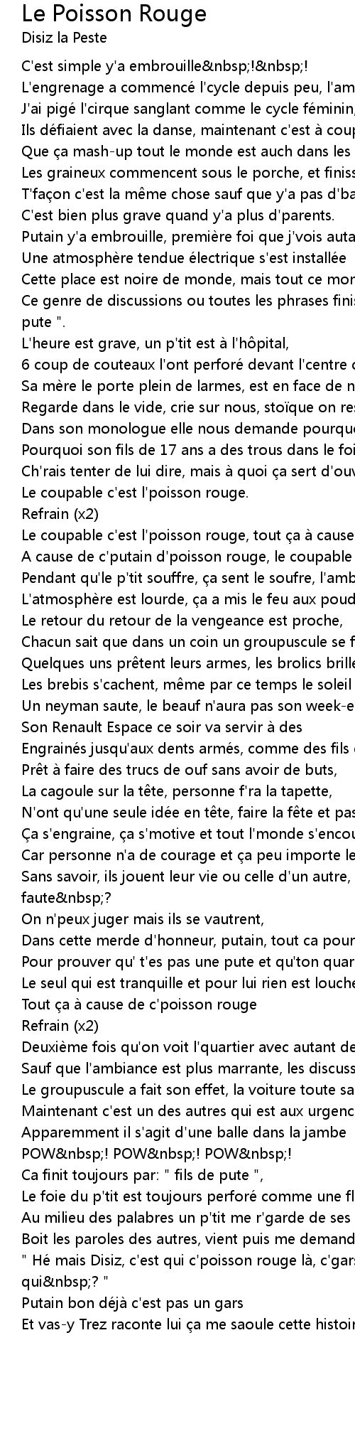 | " He mais Disiz, c' est qui c' poisson rouge la, c' gars la la, c' est qui nbsp? " | |