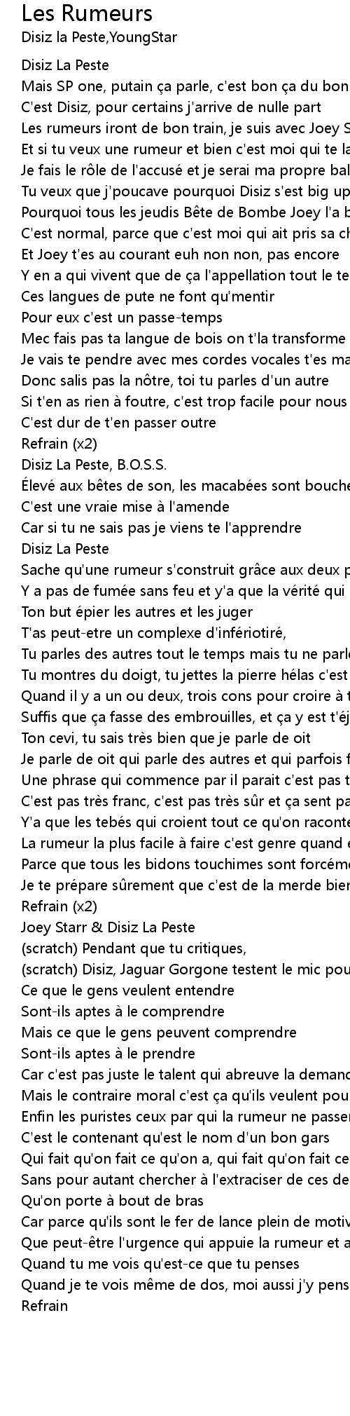 | Et si tu veux une rumeur et bien c' est moi qui te la lance | |