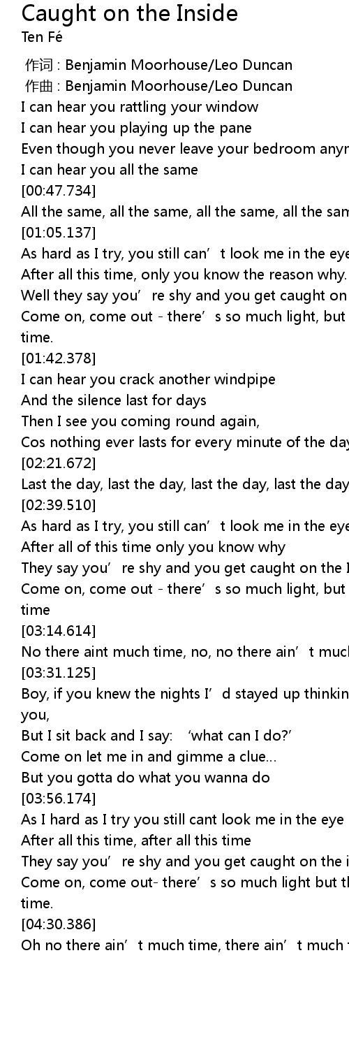 | [02:57.202] | They say you’re shy and you get caught on the Inside |