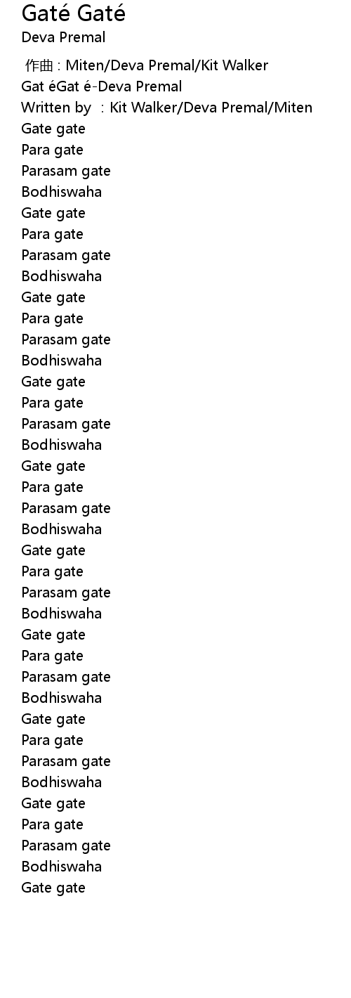 | [00:00.93] | Gat e Gat e Deva Premal |