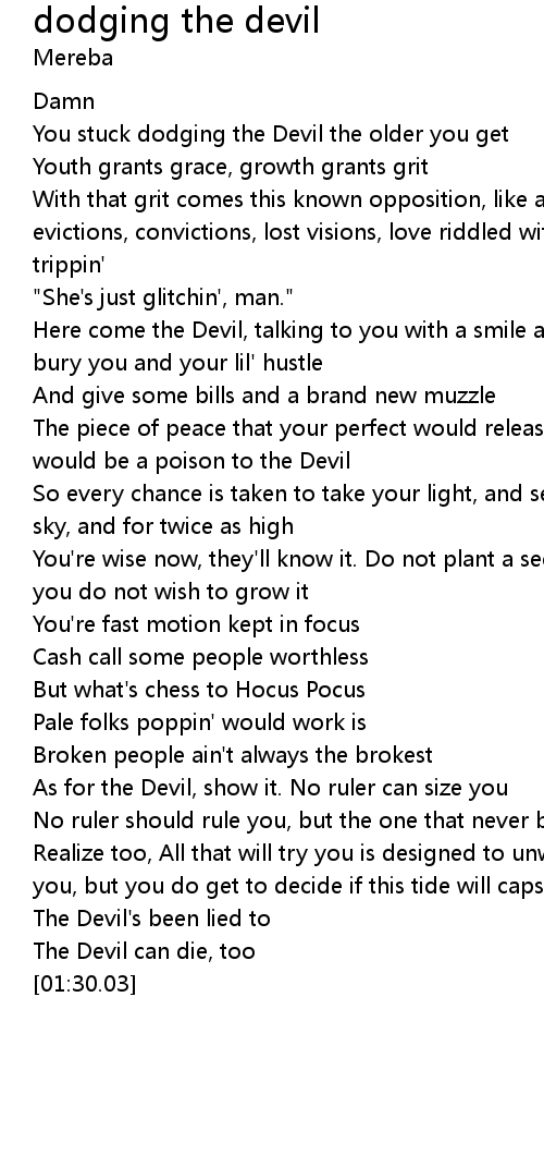 Here come the Devil, talking to you with a smile and shovel, ready to bury you and your lil' hustle |