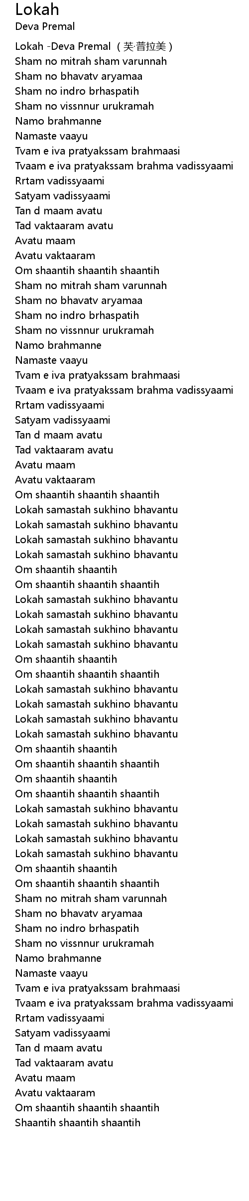 | [00:00.00] | Lokah Deva Premal fú pǔ lā měi |
