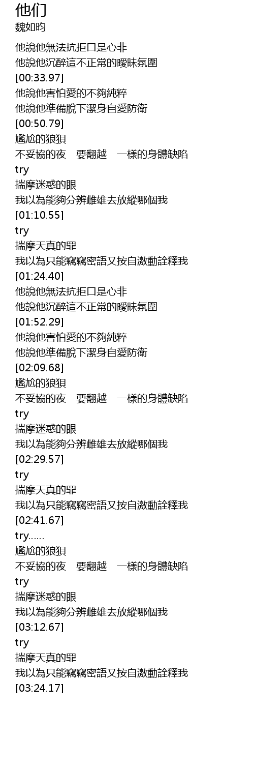 | [02:30.91] | 揣摩天真的罪 |