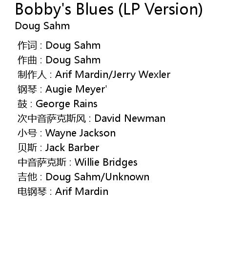 | 歌曲 | Bobby's Blues (LP Version) |