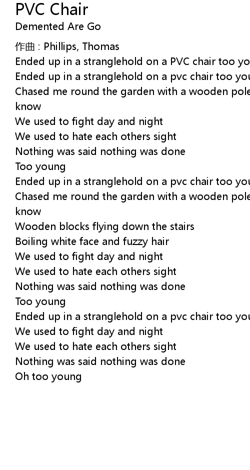 | Ended up in a stranglehold on a PVC chair too young to realise too young to care | |