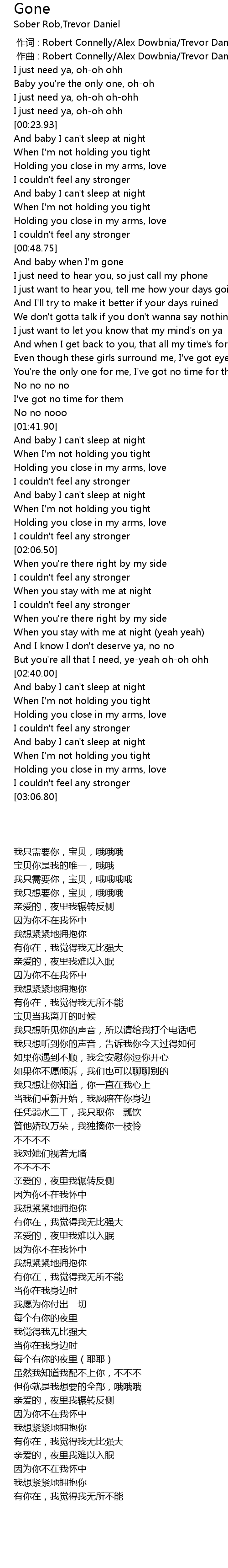 | [00:00.000] | zuo ci : Robert Connelly Alex Dowbnia Trevor Daniel |