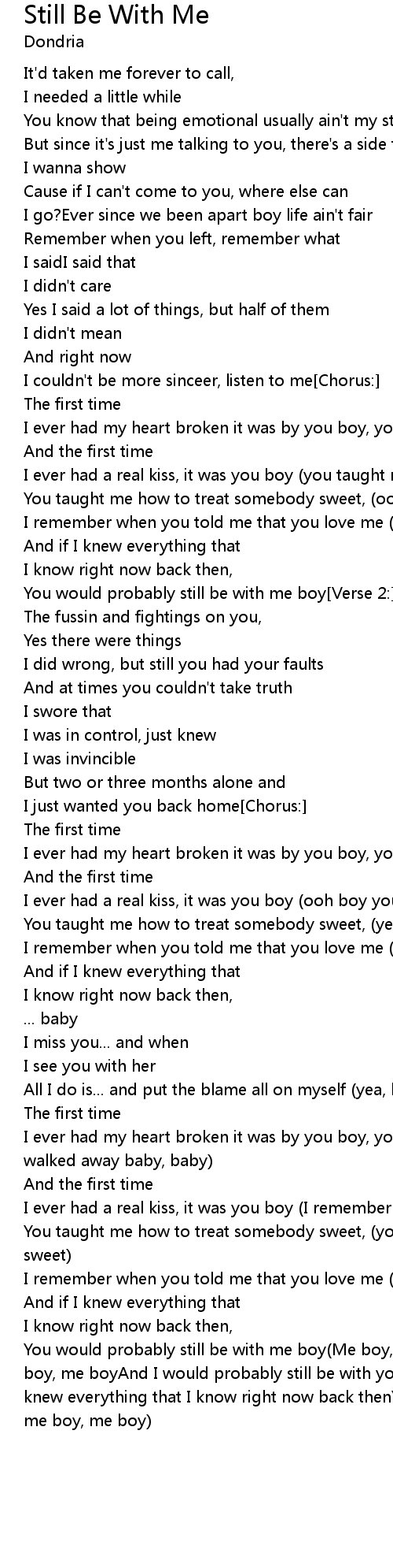 You would probably still be with me boy(Me boy, me boy, me boy, ohhh me boy, me boy, me boyAnd I would probably still be with you boy, you boy, you boySaid if I knew everything that I know right now back thenYou would probably still be with me boy, me boy) |