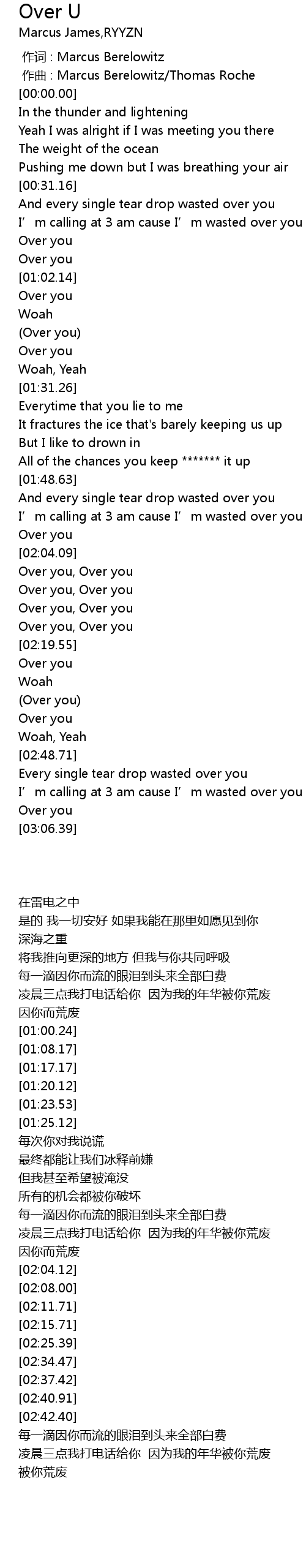 | [02:25.39] | Over you |