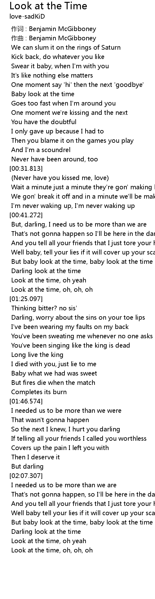 | [02:27.958] | But baby look at the time, baby look at the time |