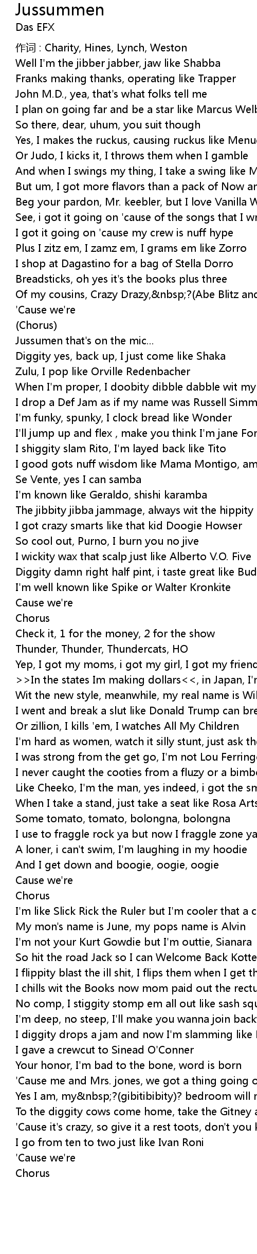 | Well I'm the jibber jabber, jaw like Shabba | |