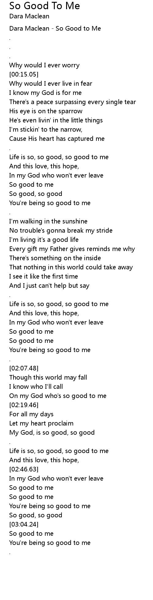 Dara Maclean - So Good to Me |
