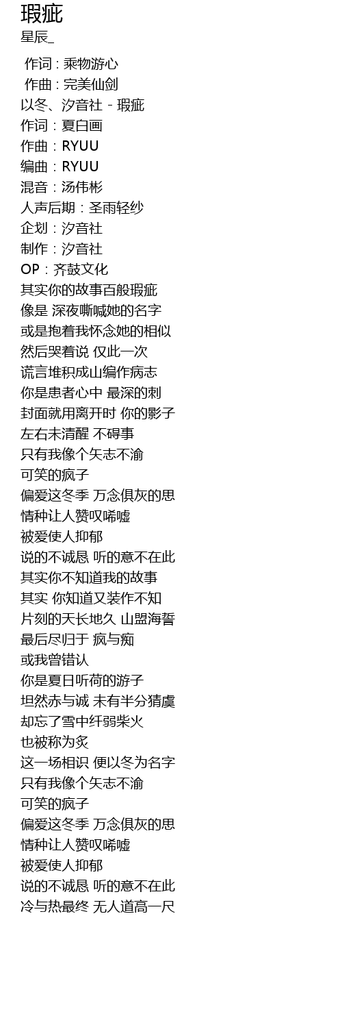 | [00:00.51] | 以冬、汐音社 - 瑕疵 |